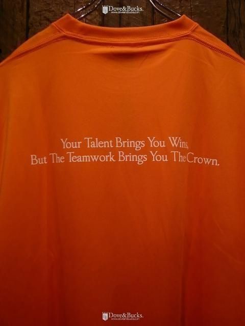 フロントにはAPPLEBUMのトレードマークロゴ、背面には【YOUR TALENT BRINGS YOU WINS,BUT THE TEAMWORK BRINGS YOU THE CROWN(才能はあなたに勝利をもたらすが、チームワークはあなたに王冠をもたらす)】のメッセージワードをプリントしております。